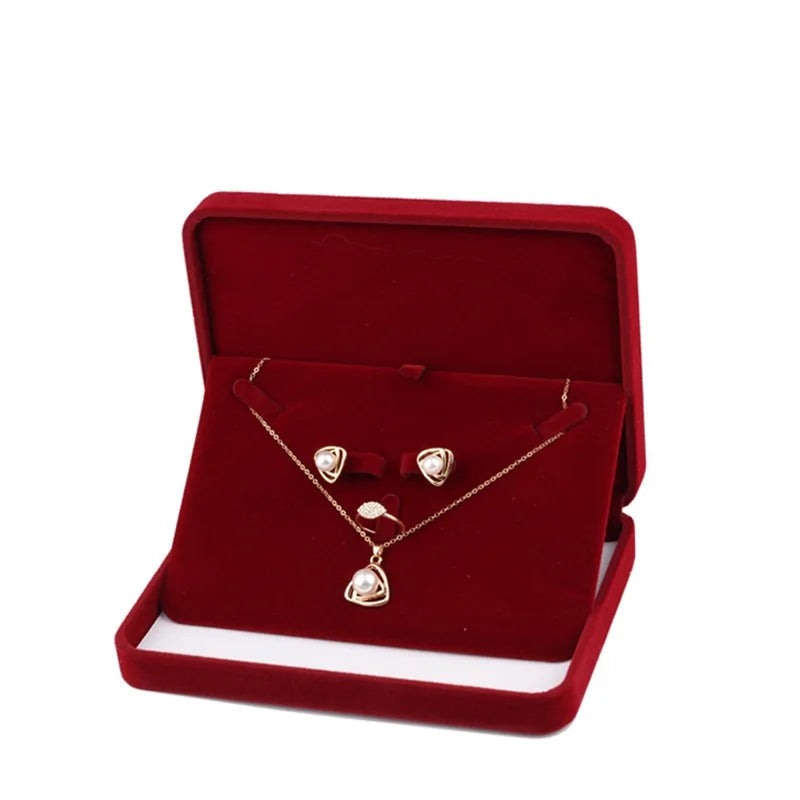 Crafted in rich purplish-red velvet with a smooth, delicate touch, it protects your treasures while enhancing their brilliance with timeless elegance.